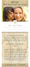 Dr. Amy Woo brochure A visit to the dentist really can be a relaxing experience. |