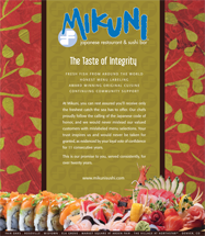 Mikuni Japanese Restaurant The Mikuni restaurants ran this ad to reinforce their commitment to integrity. |